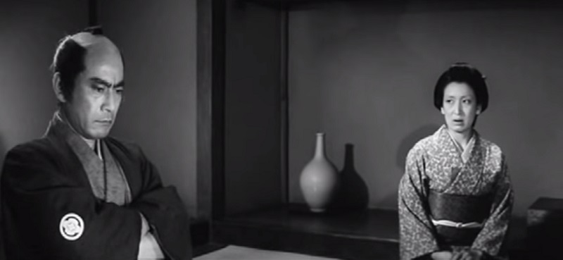 Je suis partagé entre deux choses en voyant le film. D’une part, la maîtrise formelle et technique de Kobayashi émerveille le regard à chaque seconde de pellicule : ce cinémascope (ou Tohoscope) aussi large qu’un tatami, cette profondeur de champ, ces mouvements de caméra en travelling d’accompagnement pour accentuer ou non une émotion, ces plongées vertigineuses… La maîtrise est totale. Kobayashi utilise tous les effets disponibles dans la réalisation d’un film, et surtout, tous ces procédés mis savamment en œuvre servent l’histoire. On ne se dit jamais qu’il en fait trop ou pas assez : chaque choix de réalisation, chaque angle de caméra (même quand il la penche) semble être une évidence quand on la voit. Il y a en plus une beauté plastique certaine, dans les cadrages un rythme parfaitement calculé dans le montage, et une précision dans la direction d’acteurs qui devient belle dans son économie : on est presque dans la beauté stricte, hiératique et apaisante d’un jardin japonais. Bref, on ne peut pas rêver meilleure mise en scène pour présenter une histoire.