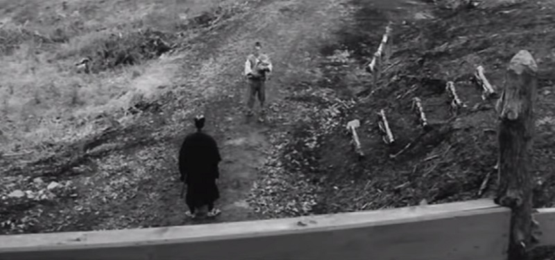 Au moins, ce film, m’aura peut-être fait comprendre ce que reprochait Kurosawa à Mifune dans Barberousse (et à tort à mon avis). Il trouvait qu’il jouait le personnage de Barberousse trop durement, de manière trop sèche. Et c’est vrai qu’on verrait mal Mifune jouer dans un autre registre que celui-ci. Quel que soit le personnage, il joue invariablement l’autorité, l’antipathie (tout le contraire de Tatsuya Nakadai, qui interprète ici un samouraï qui fait plus vieux que son âge — jouant de la moue pour le vieillir et le durcir — alors qu’il jouait les gendres idéaux chez Naruse et les samouraïs plus lumineux — mais pas moins pervers — chez Kurosawa — je pense au Garde du corps avec son petit air suffisant le flingue à la ceinture). Or, si ça donnait justement du relief au personnage médecin au grand cœur dans Barberousse, là, il faut bien avouer que ça n’apporte rien du tout, et qu’au contraire, on perçoit peut-être un peu mieux comme ça l’aridité des dialogues.