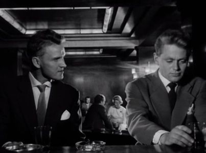 Jakten (La Chasse), Erik Løchen 1959, ABC Film AS (14)_saveur 2 décembre 202030 septembre 2025limguela comptoir de bar, verre d’alcool, deux personnages assis côte à côte de face