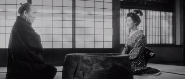 Samouraï, Kihachi Okamoto 1965 Mifune Productions Co. Ltd., Toho Company (8)_saveur 28 décembre 202017 avril 2026limguela tatami et washitsu, composition, porte coulissante, clair obscur, deux personnages assis face à face, braséro