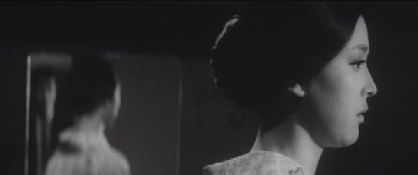 Histoire écrite sur l’eau, Yoshishige Yoshida 1965 Mizu de kakareta monogatari A Story Written with Water Chunichi Eigasha (11)_s 14 janvier 202126 septembre 2025limguela composition, chignon, personnage de profil sur le bord droit un autre au second plan sur le bord gauche