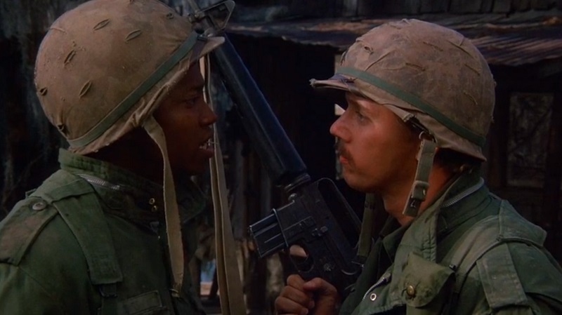 Southern Comfort, Walter Hill 1981 Cinema Group, VenturesPhoenix Films (4) 15 septembre 202118 décembre 2025limguela casque, costume militaire, arme, fusil, deux personnages debout face à face de profil en plan rapproché