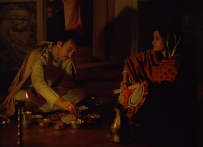 la-maison-et-le-monde-satyajit-ray-ghare-baire-1984-national-film-development-corporation-of-india-2 2 Mai 202224 juillet 2025limguela lumière chaude, lampe à l’huile, dîner, éventail, deux personnages assis en tailleur à 90°,