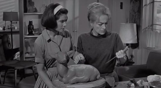 la-meurtriere-diabolique-william-castle-1964-strait-jacket-william-castle-productions-2 13 Mai 202218 décembre 2025limguela couteau, chignon, sculpture, deux personnages debout côte à côte en plan taille
