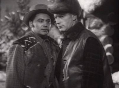 croc-blanc-alexandre-zgouridi-1946-belyy-klyk-mosnauchfilm-11 8 septembre 202221 juillet 2025limguela chapeau, deux personnages en plan taille l’un à côté de l’autre à 90°, cabane, forêt,