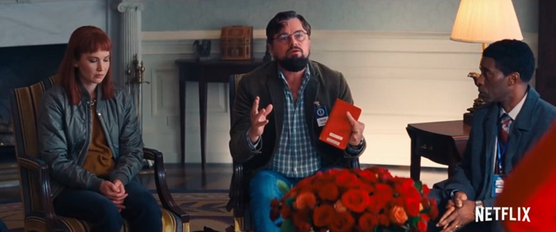 Les autres personnages ne sont guère plus convaincants. On ne sait trop sur quel pied danser avec ce personnage de la doctorante qui découvre la comète tueuse : difficile de plaisanter à son sujet, le film joue pourtant avec elle dans un comique de répétition aussi peu drôle que malvenu. En appuyant sur le sexisme dont elle est victime et dont son professeur tire profit, à l’image du reste, le film finit par tomber dans ce qu’il semble dénoncer : Leonardo DiCaprio s’étonne d’abord que l’on ne prenne pas plus attention à son étudiante…, puis assume volontiers, seul, le rôle de leader et de caution scientifique (rôle que son étudiante semblait jusque-là assumer — du moins, c’est ce que laisse entrevoir Jennifer Lawrence dans son interprétation — avant de devenir la risée des réseaux sociaux). Ce choix malheureux permet à l’acteur de prendre la lumière, et Adam McKay étouffe dans l’œuf une des propositions intéressantes du film.