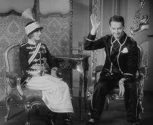 Parade d’amour, Ernst Lubitsch 1929 The Love Parade Paramount (4) 17 mars 202524 juin 2025limguela pyjama, deux personnages assis à 90°, fauteuil, costume militaire