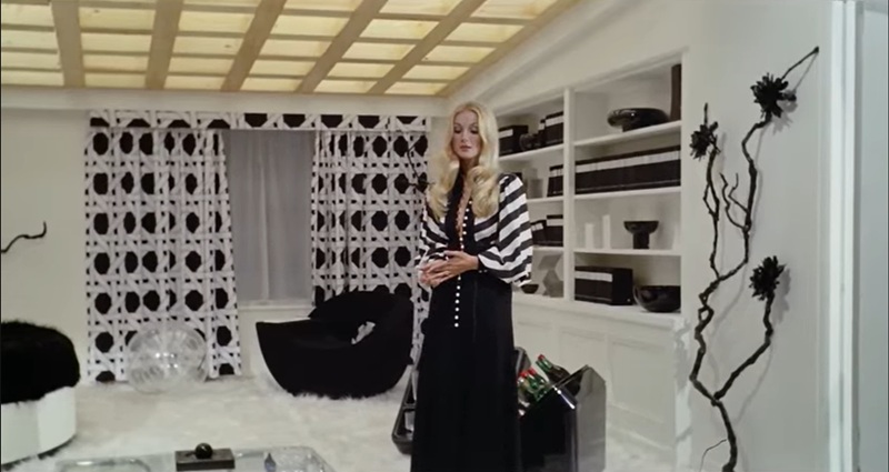 Note finale : qu’elles sont jolies ces années 70 naissantes avec leurs matériaux modernes flambants neufs ! Vingt ans plus tard, après moult rayures, salissures, graffitis et poussières, ces machins brillants et lisses se transformeront en ovnis en transformant nos villes en de véritables décharges de « nouveaux matériaux » à ciel ouvert. Les moquettes hautes de cinq centimètres avaient au moins l’avantage de finir à la poubelle la prochaine décennie venue. Les intérieurs sont aux décors ce que sont les répliques à l’interprétation : facilement interchangeables. Le sous-texte en revanche demeure la pierre angulaire de tout acteur de talent. Sa pierre de Rosette. Restez de marbre, surtout.
