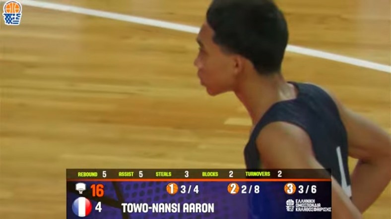 Sélectionné en fin de draft dans l’équipe Rigaudeau, le ouistiti ne perd pas de temps à se mettre en évidence dès son entrée en jeu à 5 minutes de l’entame du match. En difficulté face à une équipe menée par Zacharie Perrin et Mohamed Diawara, Aaron Towo-Nansi dégaine deux trois points insensés en transition (qu’il met) et insuffle une nouvelle dynamique en défense. La teigne se retrouve à défendre face à son partenaire de club (mais professionnel), Nathan De Sousa. Le plus jeune des sélectionnés avec Nathan Soliman et Hugo Yimga-Moukouri remet de l’ordre dans l’équipe, déjoue les défenses hautes par sa rapidité, son dribble et ses décalages dans des souricières.