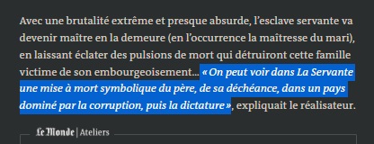 Dans le cinquième paragraphe, notre moine copiste s’approprie une citation… du réalisateur faite dans la critique du Monde.