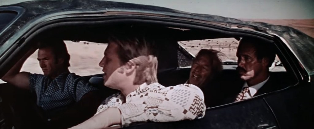 Mazursky semble regarder d’un œil coquin la mode des road movies et propose de se lancer sur la route en y brisant tous les codes. Mais sur les routes n’y trouve-t-on pas forcément la même chose ? Misère et désolation ; solitude et désert ?