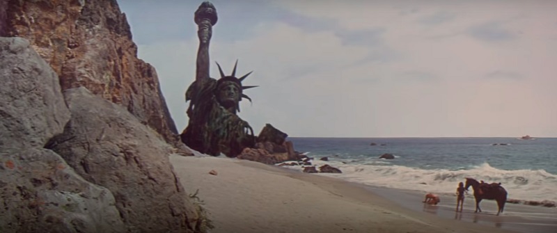 Le film de 1968 est probablement un des premiers films matures de la science-fiction reposant sur une idée simple, une inversion de valeur (et un paradoxe scientifique révélé en toute fin du film), et non sur un arsenal technologique ou un éblouissement environnemental : en dehors du défi de la représentation des singes, l’astuce du film repose sur l’apparente familiarité de l’environnement présenté. Et pour cause.