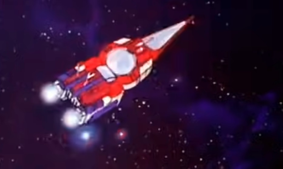 Bon, la capture est mauvaise, et j’avoue avoir eu du mal à retrouver l’origine de cette triplette qui hante ma mémoire. Il faut donc imaginer trois parties distinctes : un char ici en mode propulseur, un module en forme de disque, et un autre en forme de triangle. Ménage à trois surprenant. Quoi qu’il en soit, à l’image des transformations de Gigi dans la série éponyme, ces transformations, encore plus quand il s’agit de s’imbriquer l’un dans l’autre, ce sont ces petits moments de chorégraphies symboliques et sexuelles qui m’ont toujours fasciné dans les séries animées. Dans le même genre, il y a Goldorak, qui est encore plus explicité (un robot qui s’encastre dans un module volant qui pourrait tout autant être un vagin, un ovule ou une carapace de tortue, et qui, plus la série avançait, plus le robot en question faisait des infidélités à son attache d’origine pour venir s’encastrer dans des éléments toujours plus exotiques à commencer par le module du meilleur ami d’Actarus, Alcor — moi, j’y vois là du soft power involontaire peut-être, mais réel pour l’acceptation de l’homosexualité ; j’insiste pour les étourdis : Actarus pénètre symboliquement l’engin de son meilleur ami). (Je ne mets pas le vaisseau de Goldorak dans mon classement, mais on retrouve un petit bonus à la fin, justement parce que cette carapace de tortue, ce n’est pas ce qu’on a fait de plus bandant dans les vaisseaux spatiaux).