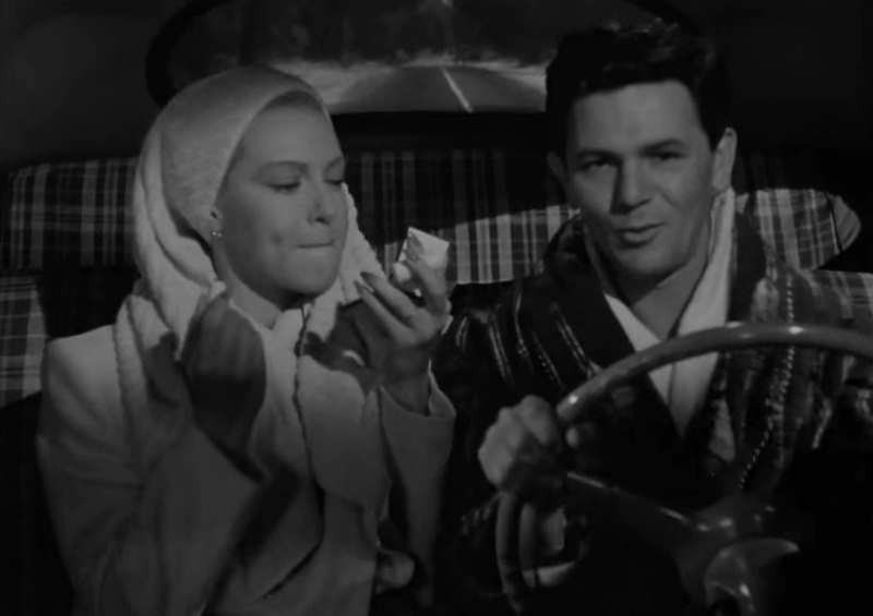 Don Siegel a souvent été confronté à la nécessité de filmer des personnages dans des automobiles, plus tard, il participera même sans doute beaucoup à faire appel à de nouveaux usages, et dans un de ses premiers films, un road movie (thriller comique et routier), malgré les nombreux défis auxquels il doit faire face, il est peut-être un de ceux qui s’y prennent le mieux pour faire oublier les transparences. Ses principales astuces : préférer une décapotable qui permettra de faire interagir les personnages avec les éléments naturels, et surtout, adopter une caméra très flottante comme si elle naviguait à côté du véhicule (cela ne marche que pour les plans sur le côté). (Voir The Lineup, 1958.)
