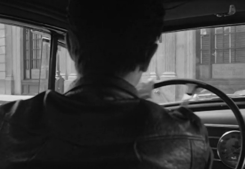 Nicholas Ray se montrera beaucoup moins innovant dans Le Violent deux ans plus tard où dans sa séquence d’introduction, il fait communiquer deux personnages depuis leur décapotable, à l’arrêt… tout en reproduisant la scène en studio. Pour La Maison dans l’ombre, il reproduit exactement le même effet (tourné dans une rue en plaçant la caméra à l’arrière) :