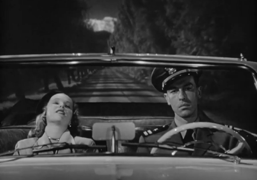 Quand on additionne Humphrey Bogart, Audrey Hepburn et Billy Wilder, on redoute de voir un assemblage sans fin de séquences tournées en studio, pourtant, il y a dans Sabrina un paradoxe qui mérite d’être relevé. Le film fait la part belle aux extérieurs. On ne parle pas d’extérieurs urbains, mais d’extérieurs avec jardins et grand ciel bleu des milieux huppés. Dans ces milieux aussi, la voiture tient un rôle central. Elle ne sert souvent que de vecteur spatial pour passer d’un lieu ou un autre, mais Billy Wilder ne semble pas trop se soucier de présenter au public un certain nombre de séquences dialoguées se déroulant dans une voiture. Et là, attention, paradoxe, car le film propose à la fois le meilleur de ce qui peut être produit en studio, et le pire. L’idée qui semble prévaloir dans toutes les situations, au contraire de Sur les quais où on ferme tout pour ne pas avoir recours à la moindre transparence, c’est d’ouvrir au maximum. Deux cas de figure dans le film : dans certaines séquences dans la voiture de monsieur, un soin tout particulier a été donné aux interactions subtiles des éléments extérieurs aperçus en arrière-plan avec l’espace intérieur du véhicule. Les ombres des arbres sont reproduites, les lignes de fuites des bas-côtés apparaissent de la fenêtre à la vitre arrière. On s’y croirait presque. Et puis, dans d’autres séquences, avec des décapotables, l’effet devient trop évident : les superpositions sont grossières et le véhicule semble flotter sur l’air (les autos étaient particulièrement instables à l’époque).