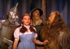 le-magicien-doz-victor-fleming-1939-metro-goldwyn-mayer-1 couettes, clown, quatre personnages en plan taille