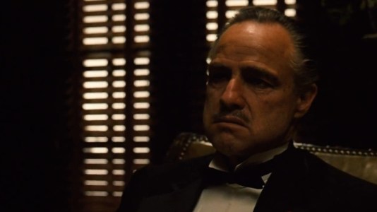Le Parrain, Francis Ford Coppola 1972 Paramount Pictures, Albert S. Ruddy Production, Alfran Productions (3) Costume trois pièces, nœud papillon, pénombre, clair obscur, fenêtre, vitres