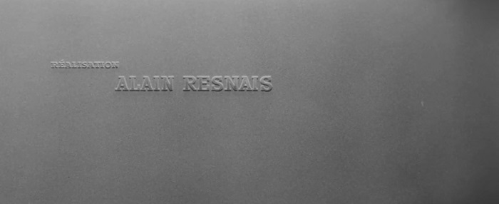 Deux références — ou influences. D’abord, Orson Welles. Mise en scène retenue : Welles se servait des silhouettes hiératiques, verticales, pour exprimer une idée de rigidité mentale qu’il opposait aussitôt avec un environnement tourmenté, lui, fait de torsions, de mirages, de points de fuite tentaculaires. Ici, tout est rectiligne, la rigidité n’est pas dénoncée, et si elle est grossie, exagérée, c’est comme pour exprimer sa propre fascination à l’égard des pantins que sont finalement ces non-personnages. On oppose en quelque sorte, le jardin foisonnant et baroque à l’anglaise, au jardin géométrique à la française. Avec l’un, on se perd avec délice ; avec l’autre, on est fasciné et on cherche des yeux les formes oblongues qui reposeront nos yeux, les ombres qui se dévoileront avec tous leurs mystères. Même utilisation également de la voix off, signe de la volonté de construire un récit élaboré et jouer sur différents tableaux ; ou encore, le magnifique noir et blanc, tout en contraste, même si Resnais s’appuie moins sur les ombres que Welles.