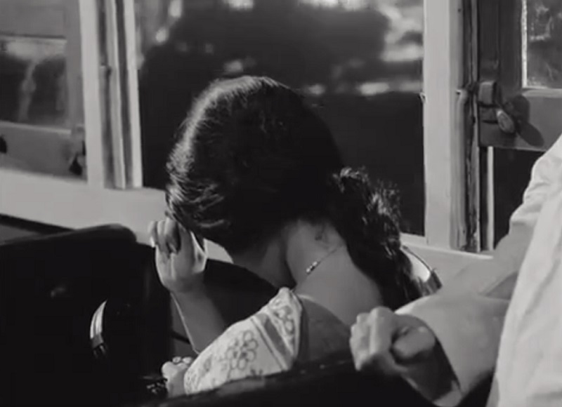 Deux heures, c’est long, mais les Indiens semblent avoir une endurance (comme certains pigeons) bien plus importantes que la nôtre. Il est vrai qu’on est désormais habitués aux amours rapidement consommées, multipliées, transversalées en une Ronde sans fin, résultat d’un siècle de culture consumériste où l’individu même est le produit ultime de cette consommation sans fin. Le suspense amoureux au cinéma procède d’une logique simple : le spectateur tient moins longtemps que ses héros tout constipés par cette indicible soupe de conventions et de devoirs, et l’amour qu’on peut offrir à la ou aux vedettes tenant souvent plus du fantasme, on est certes plus prompts à nous jeter dans leurs bras. Un mélo est toujours un prétexte à se mettre à la place du lièvre, sautant d’un fantasme à l’autre, plongeant allégrement dans le brouillard, défiant les embûches avec une svelte fureur que rien n’arrête… et nous n’en finissons pas de vouloir bousculer ces difficiles tortues paradant mille ans sans succomber et qui semblent toujours à la traîne de nos rêves. Une nouvelle force est là, invisible mais aux effets certains, la matière noire de ce système que l’on pensait d’abord double : notre regard, nos attentes, notre impatience, une force d’attraction qui ne stimule en rien la danse de ces deux tortues mais qui, peut-être, en est à l’origine… et qui finit par nous, affreux lièvres sautillants, plonger dans le désespoir. Le mélo, comme le film d’horreur, est une torture masochiste. On y vient pour ne jamais y trouver ce qu’on voudrait voir, entendu que notre plaisir, on le trouve à imaginer ce qu’on ne verra jamais… Roucoulons donc, nous ne verrons jamais ces tristes oiseaux chanter… coït-coït. Guru Dutt le montre bien d’ailleurs en faisant de ses intermèdes chantés de véritables pauses rêveuses, ou des projections d’un monde commun affranchi de toutes ces forces contraires, là où seuls peuvent s’exprimer les élans amoureux des personnages.