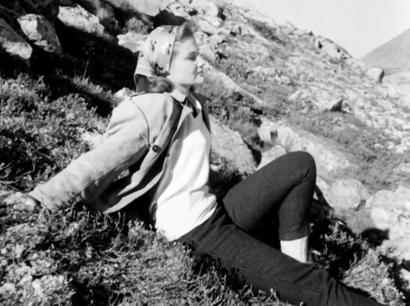 À un autre moment, quand Berit est alitée, il vient sur elle. Ils sont habillés, mais le corps l’un sur l’autre, poitrine contre poitrine (du moins on l’imagine parce qu’ils sont en gros plan) et il vient — encore — l’embrasser (et ce n’est pas un de ces baisers de cinéma, qui meurent presque aussitôt qu’ils se produisent, comme figés dans leur posture imposée, car ce qui est charmant dans les baisers, au cinéma ou ailleurs, ce n’est pas quand les lèvres se joignent et se pétrissent, c’est au contraire l’insistance à se faire face sans se toucher, ou si peu, quand le désir est encore plus pressant que la jouissance, qui elle n’est jamais qu’un effleurement éphémère impossible à rendre à travers l’image). On a ici une image et une situation pourtant commune, mais assez peu montrée au cinéma (en tout cas de cette manière, si touchante, car à la fois sensuelle et pleine de pudeur, de tendresse, aussi beaucoup, parce que ces baisers ne sont pas de la béquée d’amoureux, mais bien des gestes tendres, sur la main et la joue, peut-être même encore plus, une poitrine, en embrassant une autre) ; et sans doute encore moins à cette époque.