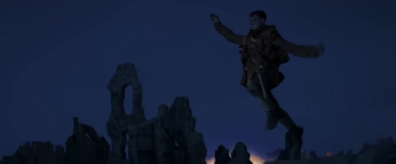 Autre belle réussite, la musique. Elle accentue parfaitement les moments forts du film. De l’émotion fraternelle quand un des deux hermès quitte le petit bourg où il laisse son compagnon, à la musique plus lourde et tragique lors des “traversées” entre les bombes ou les mouvements de foule, et jusqu’à la séquence sidérante du village en ruine de nuit. Ces passages “opératiques” ne sont pas sans rappeler certaines des séquences de films aux quêtes presque identiques que son Apocalypse Now ou Aguirre. La musique, à mesure que les personnages s’enfoncent dans l’enfer de l’inconnu, illustre à ce moment une forme d’ivresse hallucinatoire qui doit bien refléter les sauts de conscience, la sidération et les divers troubles qui nous assaillissent quand on se trouve piégés dans un tel environnement hostile alors qu’on se doit de survivre et de continuer à se frayer un chemin au milieu des cadavres, des cratères d’obus, des débris et des ruines.