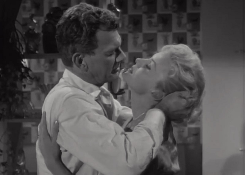 Dans les films noirs, les deux « amants criminels » se disent volontiers l’un à l’autre qu’ils s’accordent comme personne. Mais ici, en dehors du renoncement initial à appeler la police, la sœur n’a commis aucun crime et c’est son cheminement intérieur vers le côté obscur qui fournit au récit une part de son suspense. Ah, si, j’oubliais : au regard du code Hays, elle est déjà coupable, puisqu’elle a divorcé.