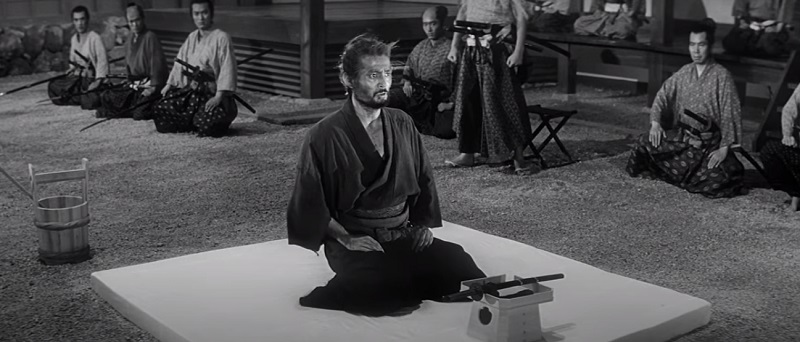 Le récit de cette vengeance se fait en deux temps : d’abord celle des samouraïs qui ont été au plus près d’une manœuvre pour obliger le beau-fils du miséreux à se faire hara-kiri (quelque chose de déshonorant pour certains ronins devant survivre en ces temps de paix). Ensuite la vengeance au sein même de la maison seigneuriale pour tuer quelques samouraïs de plus. Au final, le ronin miséreux, qui n’avait plus rien à perdre (toute sa famille ayant péri), y laissera la vie, mais il aura démontré par le récit de son histoire que l’honneur des samouraïs ne signifie rien, qu’il n’est là que pour servir la grandeur feinte d’une maison. Et cette idée se confirme quand le doyen demande qu’on trafique les archives pour cacher ce déshonneur de voir un simple ronin vaincre la moitié de leur maison. Il faut toujours sauver les apparences, la grandeur de la coutume et d’un nom de maison…