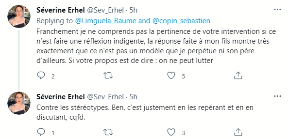 et qui disait : « Les femmes devraient surtout en tirer la leçon que ces hommes honnêtes dont vous parlez ne sont pas forcément ceux que l’on croit, et que la première chose à faire, c’est un coup de pied où ça fait mal et un dépôt de plainte. Dénoncer dans des médias poubelles : zéro efficacité. »