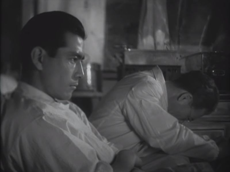 Comme dans Œdipe, ce qui était d’abord une enquête pour résoudre un problème d’ordre général (le traître parmi le groupe), se transforme en une quête personnelle sur les origines. Mifune ne connaît pas son père, et comme dans toutes les familles monoparentales…, ça pose problème. Du pain béni pour l’acteur qui peut jouer son personnage favori de bougon crasseux. Seule différence avec la pièce de Sophocle, c’est le chef de clan qui mène ici l’enquête. Mifune s’est depuis un moment résolu à ne pas connaître son père. C’est donc ce chef qui va découvrir la réalité de ses origines… La dernière demi-heure met ainsi en concurrence deux aspects de la trame, que le chef de clan voudrait éviter de se voir réunis. La petite histoire ne peut devenir la grande. Et cette histoire est bien cruelle. Mifune ne connaîtra jamais la vérité. À l’image de la vérité cachée par le scribe obéissant à son chef…