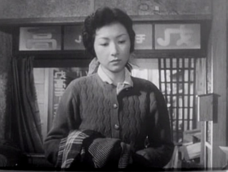 Pour suggérer cet humour, il fallait un acteur capable d’assumer ce rôle de perturbateur indolent. Et Rentarô Mikuni est parfait dans ce registre. Le fait de le revoir dans ses nombreux films futurs est peut-être trompeur, mais il a quand même une gueule et des mimiques qui ne trompent pas. Le personnage a sans doute été écrit ainsi. Veuf, il est indifférent à tout jusqu’à ce que ce jeune couple vienne partager sa petite maison. Mikuni a toujours cet air ahuri qui laisse penser qu’il vient de se réveiller ou qu’il pense à autre chose. Parfait pour jouer les idiots, ou pas. Parce qu’il est (et sera toujours) sur un fil, ne tombant jamais dans le grotesque. Ici par exemple, on le voit s’épiler les poils des narines. Un détail, mais qui fait tout. Quand il dévoile ses sous-vêtements ridicules, les deux autres se marrent comme des gosses, et lui ne comprend pas ce qu’il y a de si drôle, d’autant plus que c’est sa défunte femme qui les lui avait confectionnés pendant le rationnement… Humour doux amer. C’est d’ailleurs la seule fois où on verra le couple rire, et être sur la même tonalité.